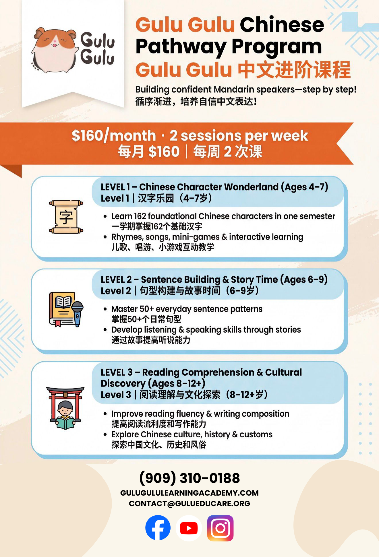 A bilingual preschool, like Gulu Gulu Learning Academy, introduces children to multiple languages, which can improve cognitive flexibility and increase cultural awareness. Our Rancho Cucamonga preschool offers Mandarin and Cantonese language programs, helping children build communication skills and fostering an appreciation for diversity from an early age.
